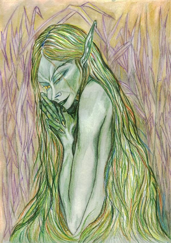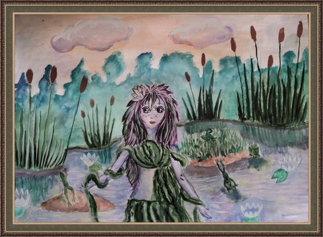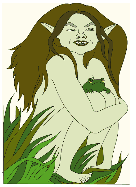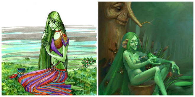 Попробует нарисовать кикимору в виде молодой длинноволосой девушки: