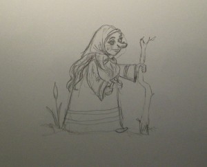 Второй вариант рисования Кикиморы. Правда тут она выглядит милой старушкой.