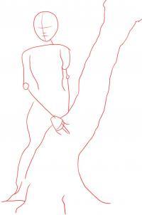 На схеме мы видим,как можно это сделать изначально и изобразить набросок в виде четырех фигуру,а затем начинаем прорисовку руки,ног в виде двух овалов,руки,челюсти и глаза.