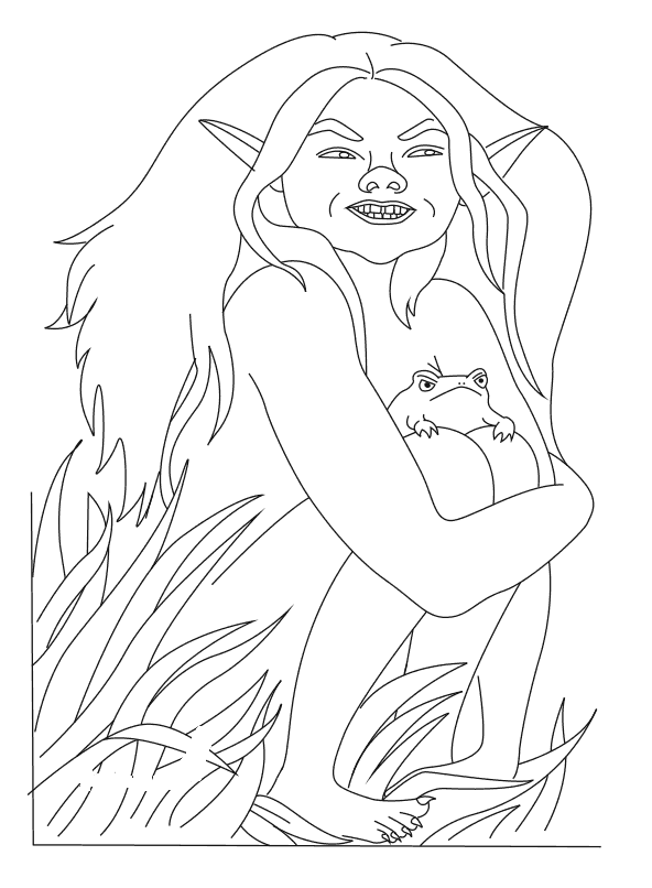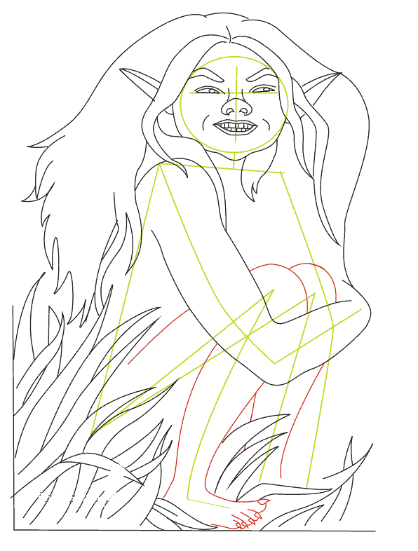 Если же образ длинноволосой красавицы не подходит для вида кикиморы, то можно нарисовать ее в виде безобразного существа: