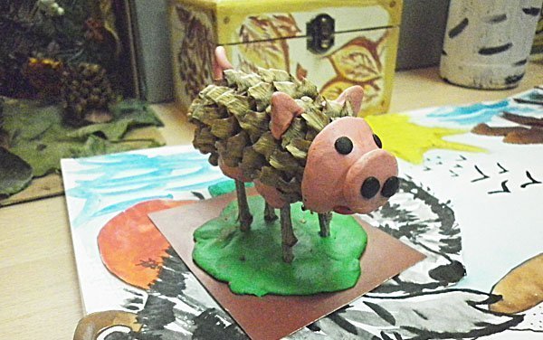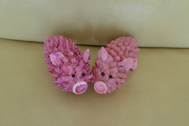 Проще всего и быстрее показать свинку из природных материалов. Поскольку основная часть поделки имеется, надо лишь "пристроить" мордочку, уши, хвостик:
