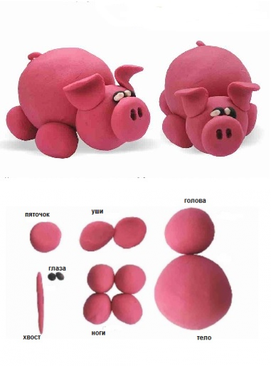 Свинку, поросенка можно сделать из любого подручного материала - и будет красиво. Например, в любом доме, где есть дети, отыщется пластилин Вот и слепим свинку из него. Схему прилагаю -
