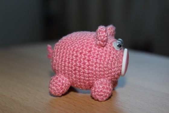 Затем добавим мелкие, но важные детали из пластилина - глазки, пятачок, можно вылепить и язычок. Получится смешной веселый поросенок.