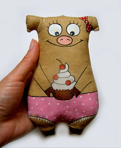Свинку можно сделать массой способов. Кто-то из мастериц делает из соломы. кто-то шьет из ткани. Так же можно воспользоваться полимерной глиной. Я уже отвечала на подобные вопросы и сейчас не буду очень оригинальной. Мне нравится работать с соленым тестом и холодным фарфором. Сварить его не просто, но можно. Надо взять крахмал кукурузный, пару ложек клея ПВА (только обязательно с пластификаторами), затем крем (любой подойдет), сок лимона. Варим до приятной массы. а затем быстренько замешиваем его на руках. Обязательно стоит взять масло детское, чтобы масса не липла к рукам. Замешиваем. затем можно окрасить в нужный вам цвет. Если мы делаем свинку. то можно взять остатки розовой помады. Уверяю, получится очень красиво). И теперь начинаем лепить. Все делаем по отдельности. Голову - просто шарик, так же ушки (немного заостренные), пятачок, глазки). Тельце тоже делаем из шарика из толстенькой колбаски. Ножки отдельно, а потом все вместе соединяем. Изделие из домашнего фарфора не крошится, но бросать его не стоит.