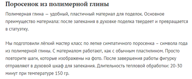 Тем, кто привык работать с полимерной глиной, можно предложить выполнить фигурку символа 2019-го года - свинки - именно из этого материала, потому что само по себе это животное довольно-таки незамысловатое, а гладкая розовая глина сделает сувенир наиболее привлекательным и милым. Для изготовления фигурки потребуется выполнить несколько не слишком сложных шагов: