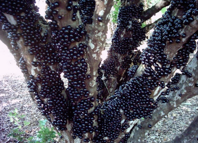 Джаботикаба - удивительные плоды растут на этом бразильском виноградном дереве. Плоды представляют собой небольшие шаровидные фрукты диаметром приблизительно 4 см. А внутри фиолетовых плодов содержится мякоть с семенами, а мякоть напоминает желе. Этот плод очень сладкий и его не только употребляют как лакомство, но и используют для приготовления спиртных напитков.