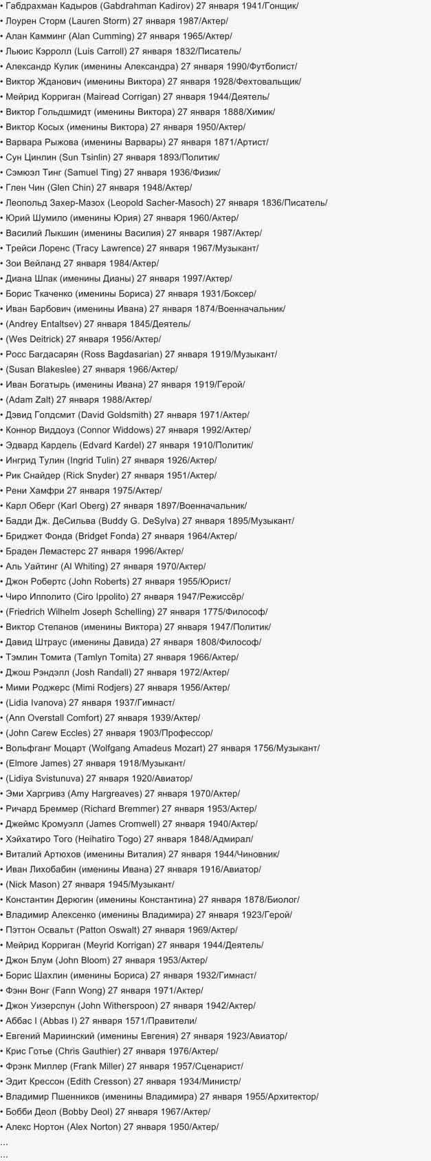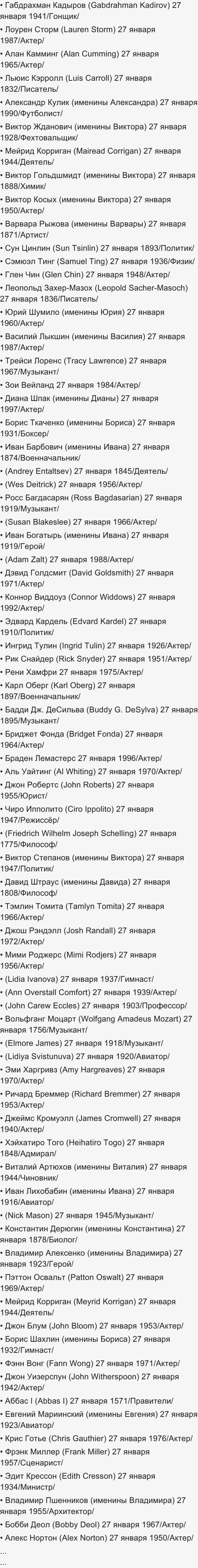 Пришлось посмотреть. День рождения каждого из этих знаменитостей - 27 октября. Отмечу, что достойные личности родились в один день с автором с ником AleXI.— 10 лет назад