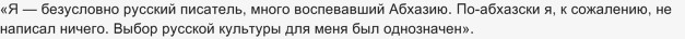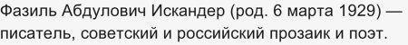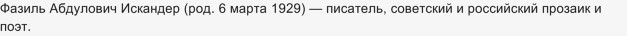 В википедии написано, что Фазиль Искандер является русским писателем, хотя это не так: отец его имел иранское происхождение, а мать - абхазка.