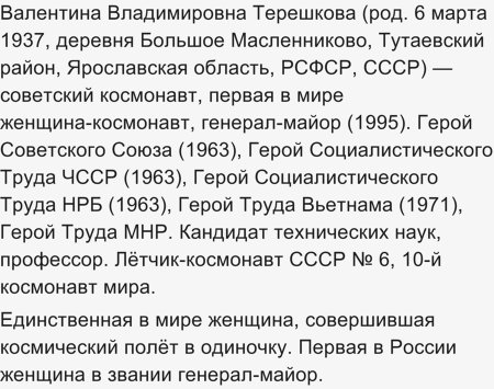 Первая женщина - космонавт, легенда. О ней слагали песни: