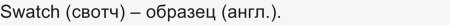 Недавно столкнулась с понятием "свотчи" при чтении отзывов на декоративную косметику. Сделать свотчи - это значит наглядно показать образец косметики на коже (губах, ногтях, веках и так далее), то есть сфотографировать и разместить для всеобщего восхищения. Возможны и свотчи в форме видео.