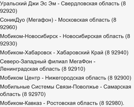 Что же касается региона, то для его определения необходимо знать следующие три цифры номера. Номера телефонов, начинающиеся с 8929, могут быть расположены и Сибири, и на Дальнем Востоке, потому что распределение номеров Мегафоном, как другими операторами, идет не по порядку первых трех цифр.