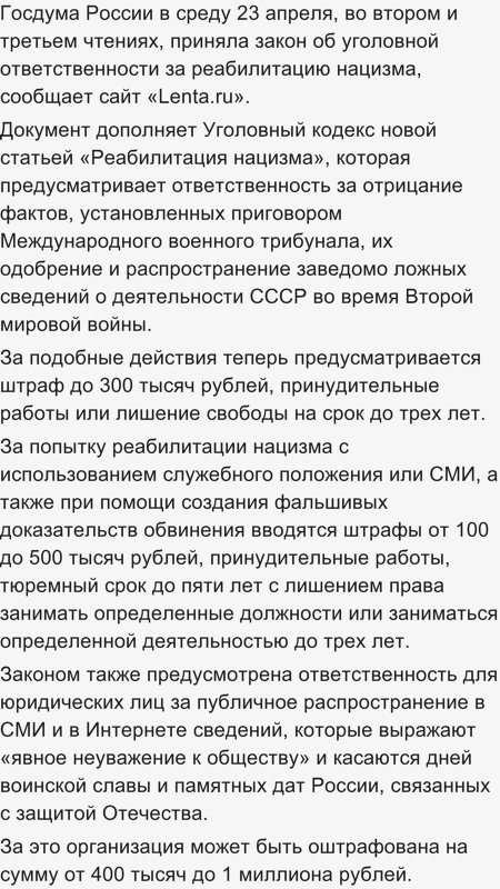 Уголовная ответственность за реабилитацию нацизма наступает при...?
