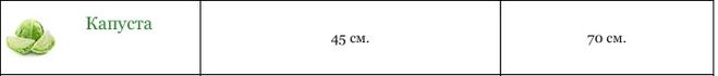 Среднеспелая капуста - расстояние между рядами около 55 см, расстояние между рассадой 40-45 см.