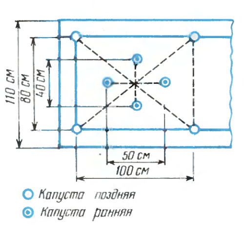 Так раннюю кочанную капусту нужно сажать схеме 50 х 40 см, а позднюю - 100 х 80 см