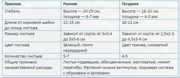 У поздних сортов капусты цвет сизоватый и по росту она выше ранней рассады ранних сортов. Еще листочки у поздних сортов на рассаде расположены реже.